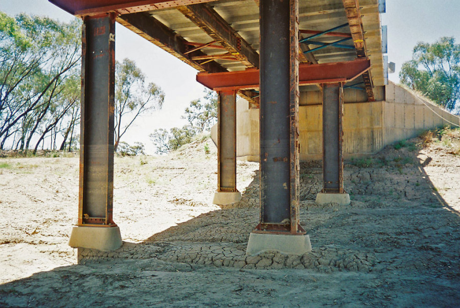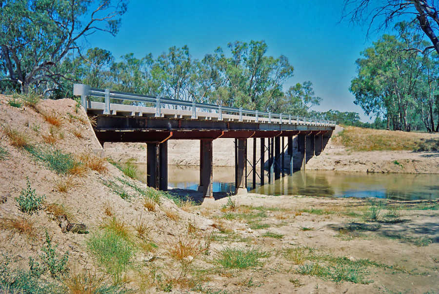 The bridge was constructed on the timber piles supporting the original timber bridge. Although the exposed timber was badly deteriorated the piles below ground level were sound. Nevertheless supplementary steel piles were driven from the deck, prior to demolition. Pile caps were constructed using thin precast concrete walls and pedestals rather than conventional formwork, shortening construction time by several weeks.