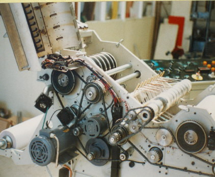 Seven parallel strips are continuously bonded by heat to a PVC transfer film under closely controlled parameters, including temperature, pressure, and speed. The film is cut to length by a rotary guillotine, ready for laminating to the thick plastic sheets, 21 cards to a sheet.