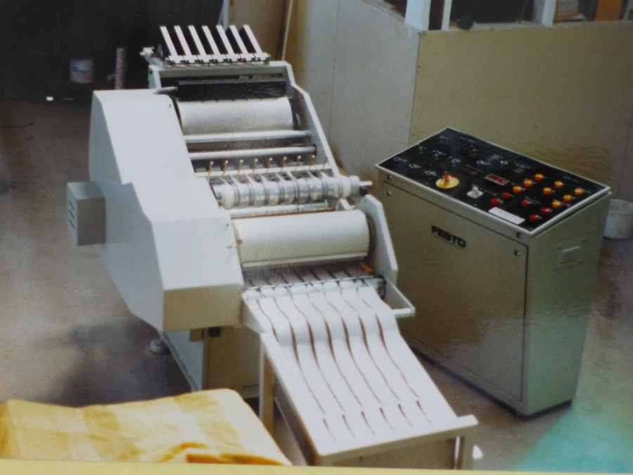 The familiar magnetic stripes on the backs of credit cards are applied by this machine.
